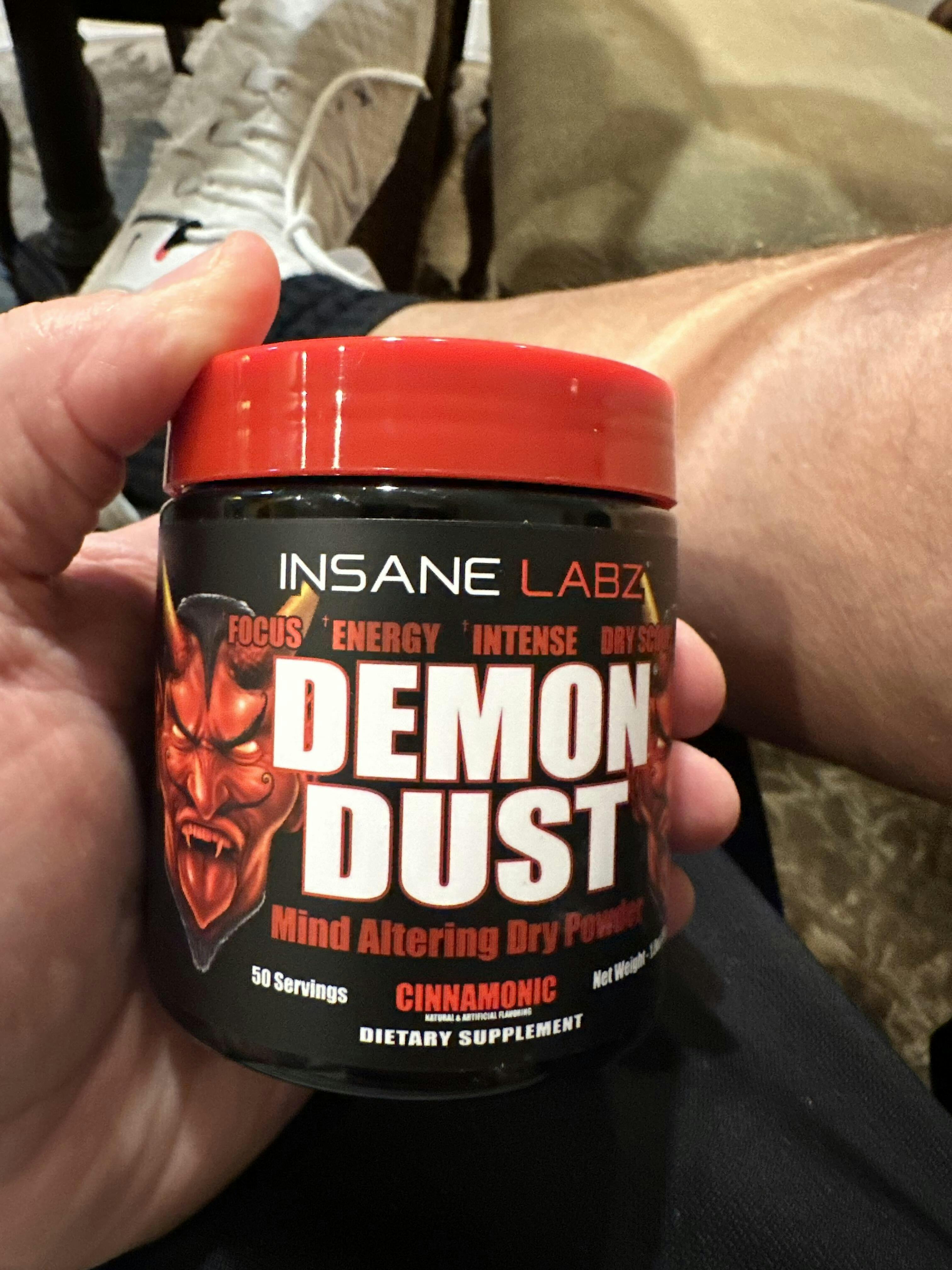- NO WATER NECESSARY - Demon Dust by Insane Labz is an energy dry powder. Just take one scoop, place under your tongue, let it sit there for 15 seconds and you’re good to go. No bottle, no water, no problem.